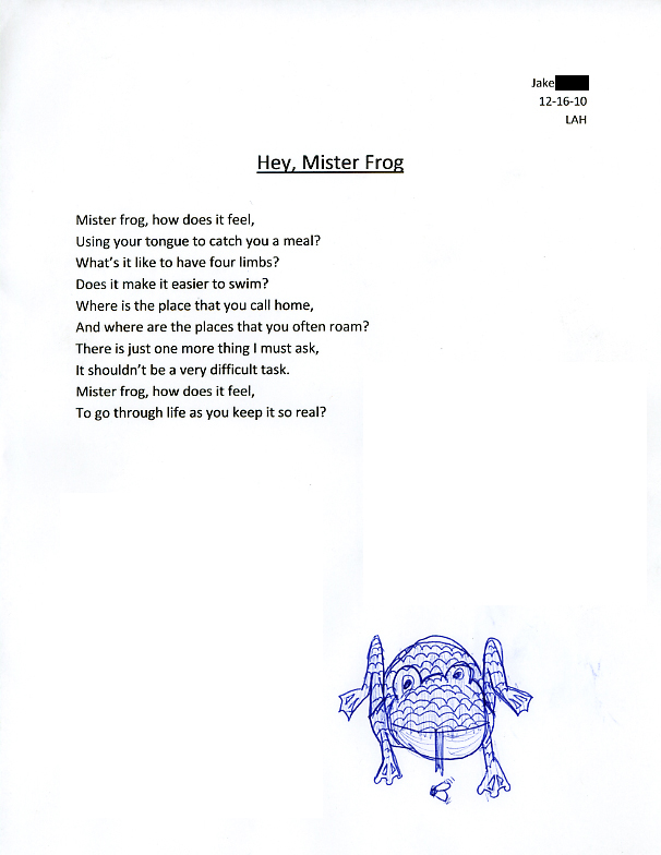 Please enjoy these poems and illustrations presented by Berdine Leinbach's 8th Grade Language Arts Classes at the Indian Valley Middle School. The work was completed in December, 2010 in response to PoetryWITS' Visiting Poets program. The lesson outline is also available on our website - HERE.