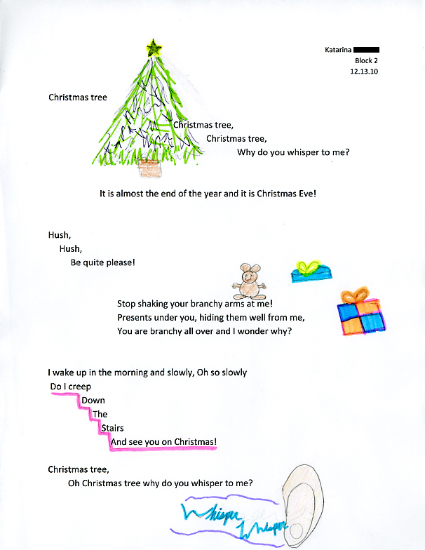 Please enjoy these poems and illustrations presented by Berdine Leinbach's 8th Grade Language Arts Classes at the Indian Valley Middle School. The work was completed in December, 2010 in response to PoetryWITS' Visiting Poets program. The lesson outline is also available on our website - HERE.