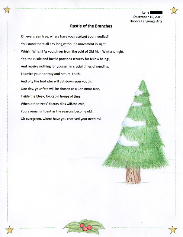 Please enjoy these poems and illustrations presented by Berdine Leinbach's 8th Grade Language Arts Classes at the Indian Valley Middle School. The work was completed in December, 2010 in response to PoetryWITS' Visiting Poets program. The lesson outline is also available on our website - HERE.