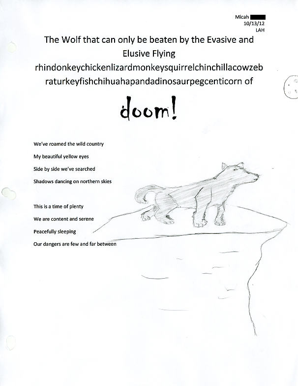 Please enjoy these poems and illustrations presented by Berdine Leinbach's 8th Grade Language Arts Classes at the Indian Valley Middle School. The work was completed in December, 2010 in response to PoetryWITS' Visiting Poets program. The lesson outline is also available on our website - HERE.