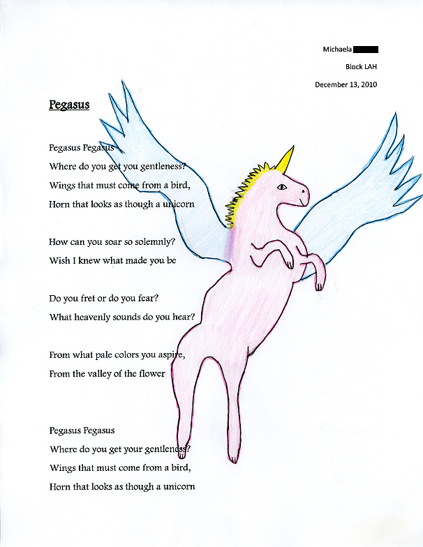 Please enjoy these poems and illustrations presented by Berdine Leinbach's 8th Grade Language Arts Classes at the Indian Valley Middle School. The work was completed in December, 2010 in response to PoetryWITS' Visiting Poets program. The lesson outline is also available on our website - HERE.