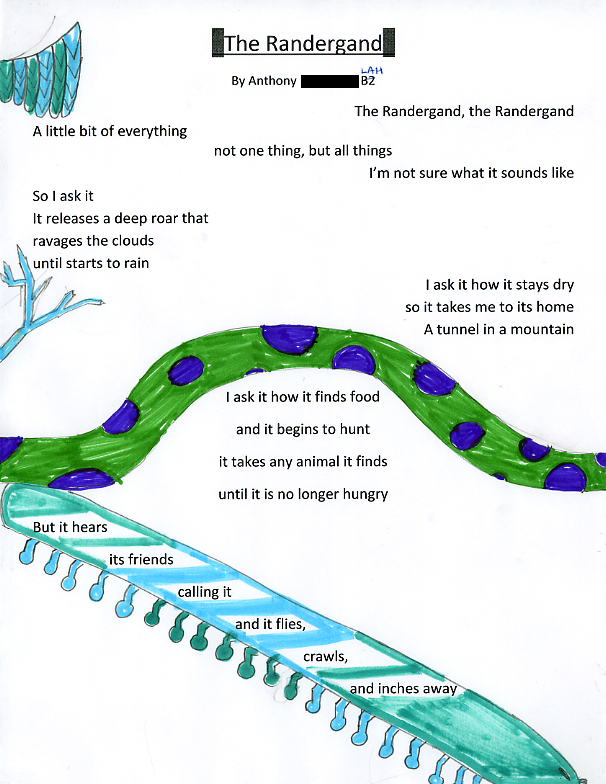 Please enjoy these poems and illustrations presented by Berdine Leinbach's 8th Grade Language Arts Classes at the Indian Valley Middle School. The work was completed in December, 2010 in response to PoetryWITS' Visiting Poets program. The lesson outline is also available on our website - HERE.