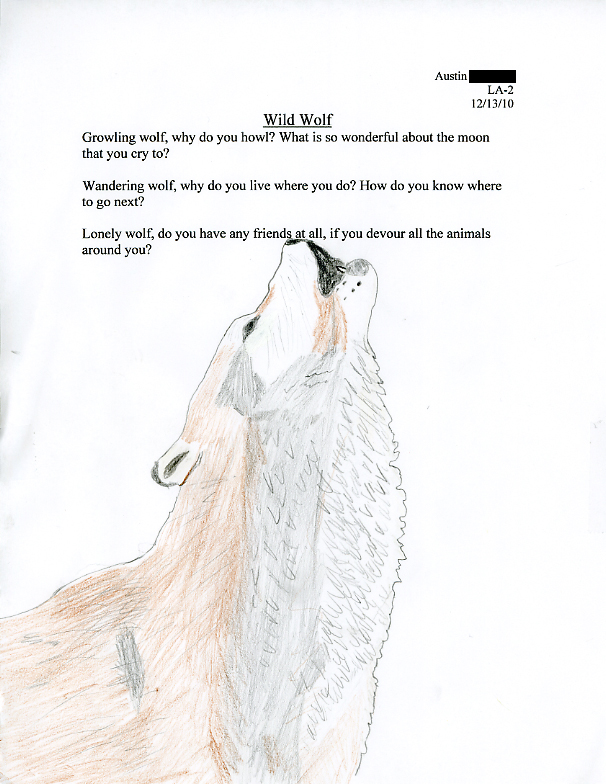 Please enjoy these poems and illustrations presented by Berdine Leinbach's 8th Grade Language Arts Classes at the Indian Valley Middle School. The work was completed in December, 2010 in response to PoetryWITS' Visiting Poets program. The lesson outline is also available on our website - HERE.